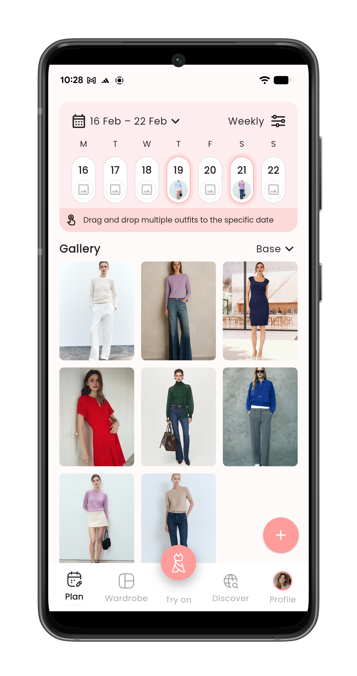 Drag, drop, and schedule your outfits ahead of time. Goodbye morning wardrobe stress!